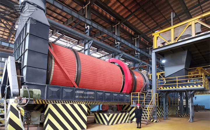 由于市政污泥高濕高粘的特性在烘干過程中容易粘黏在筒壁上,因此在市政污泥干化處理設備的工作流程中,關鍵還是防粘黏的設計,具體干燥過程如下:濕泥由給料裝置送入污泥烘干機內筒中,內筒設置有“旋耙破碎”打散裝置將濕泥不斷打散粉碎,使污泥顆粒隨著筒體轉動不斷翻滾、分離。為了避免高濕高粘的市政污泥粘附、結團,筒內設置有分布密集的導料揚料裝置,在揚料板的高速擺動下,物料逐漸灑落并均勻充滿整個干燥空間。此時,熱氣流與濕污泥密切接觸,充分進行熱交換,加快物料表面水分的蒸發,形成不粘不黏的散狀后被送入到中筒。中筒采用了逆流干燥技術,熱風與濕泥逆筒而向,使污泥內部的水分進一步被蒸發,污泥干燥后變成低水分的松散物料,由出料口排出,烘干過程完成。